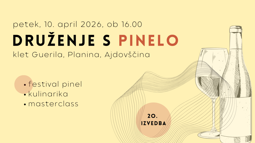 Vabimo vas na 20. Druženje s pinelo! Za tokratno 20. druženje smo festivalu pinele namenili novo lokacijo in nov termin! V petek, 10. aprila, vas vabimo v čudovito okolje Vinske kleti Guerila, kjer bomo skupaj praznovali 20. Druženje s pinelo – večer vrhunskih pinel, kulinarike in prijetnega druženja.